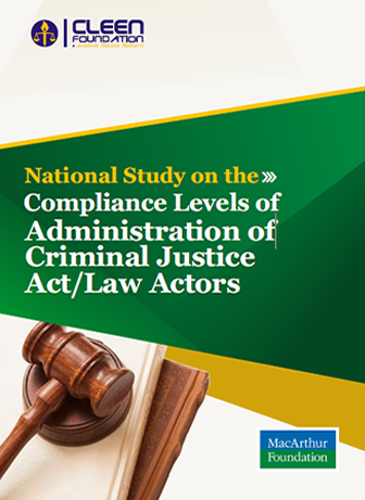 NATIONAL STUDY ON THE COMPLIANCE LEVELS OF ADMINISTRATION OF THE CRIMINAL JUSTICE ACT LAW The report details the findings of a study carried out by the CLEEN Foundation, with the support of the MacArthur Foundation, as part of a consistent organisational effort to continuously update existing knowledge on the implementation of the Administration of Criminal Justice Act/Law (ACJA/L) in Nigeria. The primary objective os this study is to investigate the compliance level of relevant actors in the. . …..Download. |